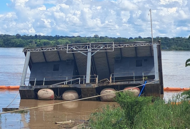 Uma estrutura improvisada montada pela Marinha do Brasil, por meio da Delegacia Fluvial em Porto Velho, começou a apresentar sinais de afundamento na manhã desta terça-feira (21), no porto do rio Madeira, nas proximidades da Estrada de Ferro Madeira-Mamoré.